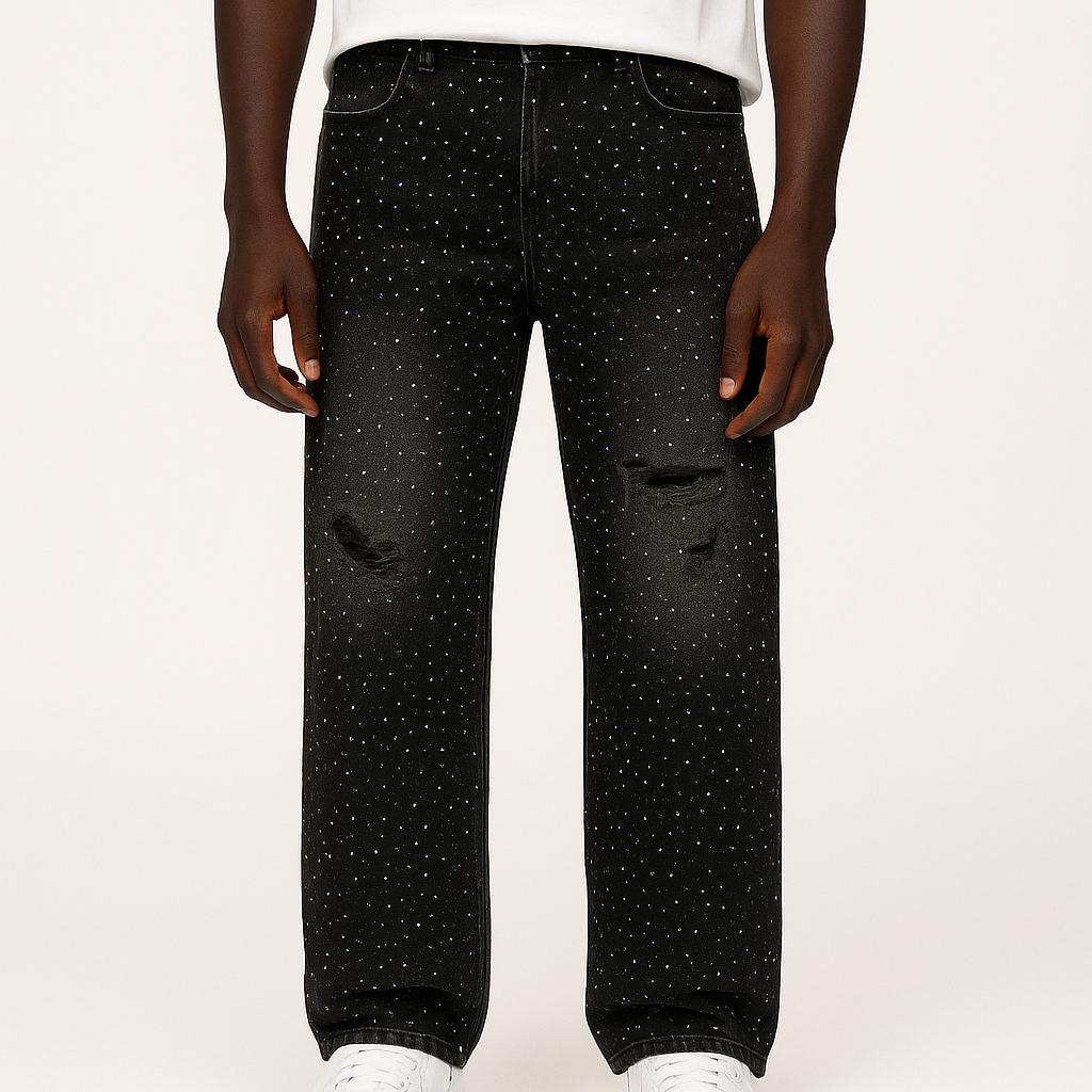 Upgrade your wardrobe with the Stardust Rhinestone Jeans, where bold streetwear meets elegance. Designed for those who love to stand out, these baggy-fit jeans ensure turn heads with every step while staying effortlessly comfortable.