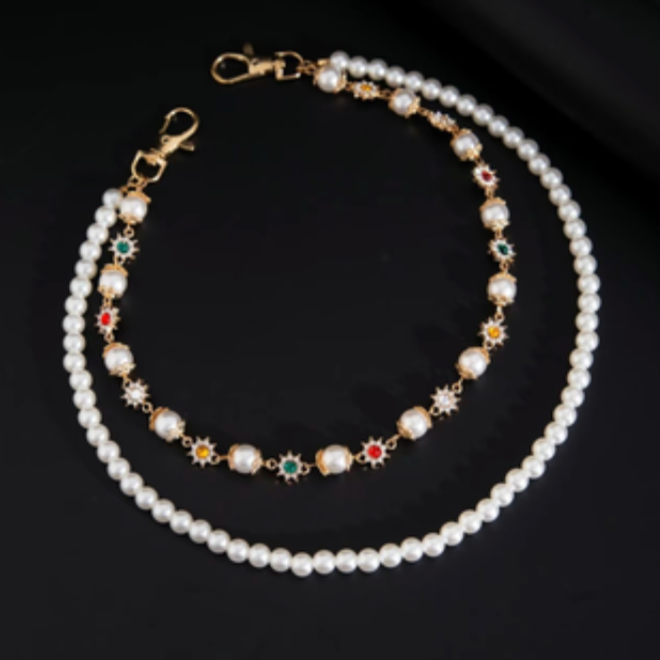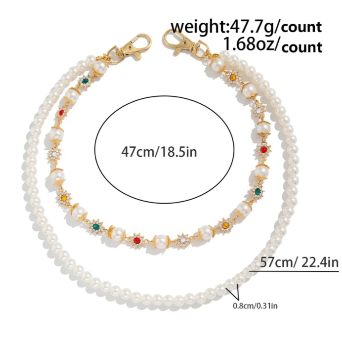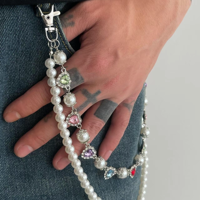 Bold elegance meets street luxe shine. The Pearl Chain transforms your pocket game with a fierce yet refined edge. Featuring lustrous faux pearls paired with subtle rhinestone accents, this chain brings a fresh, elevated vibe that catches every eye—whether clipped to your belt loop or styled with your favorite layers.