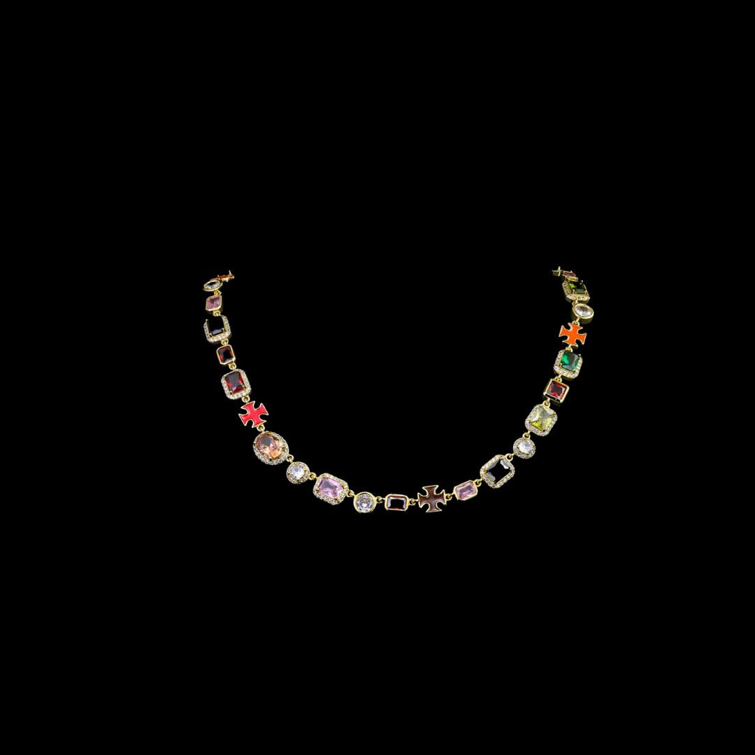 Introducing the Gemstorm Chain — a showstopper drenched in multicolor stones that hit from every angle. Loud, luminous, and impossible to ignore, this piece is made for those who move like main characters and shine like they mean it.