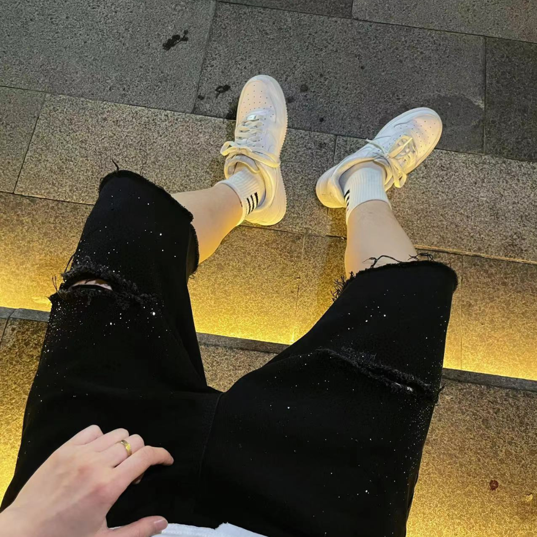 Step into summer with the Rhinestone Jorts—where bold streetwear energy meets celestial shimmer. Designed for those who dare to shine, these jorts bring a statement look with effortless comfort and edge.